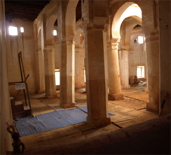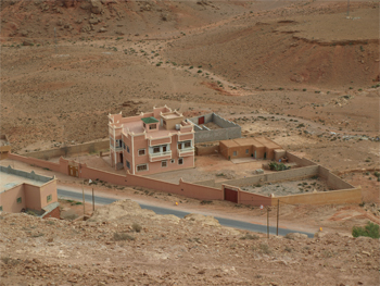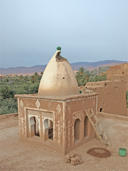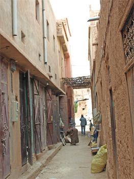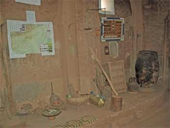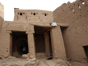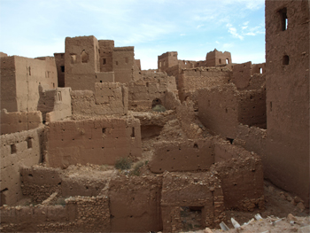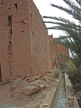 Across the valley we entered the old town that was ruined and vacated when heavy rains dissolved many of the adobe structures. In the middle of the old town is a 300 year old Madrasa or school and mosque for Saharan kids. The bath, dormitory, prayer room and terrace are in fairly good condition and maintained by a caretaker.