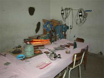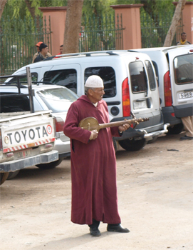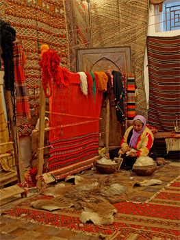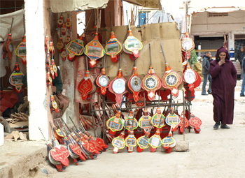 We wandered through the town market where everything was for sale in the small stalls lining the alleys. The most interesting section was where the artisans had their shops. Some made sieves for flour and grains, paddles for carding wool, paddles for baking bread in wood ovens, dresses, yarn and textiles, and bellows. Tineghir is famous for making bellows for wood ovens and stoves.