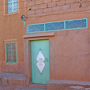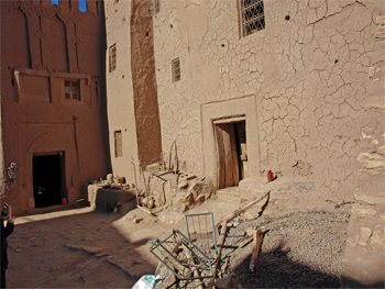 This morning on the way out of town we stopped to take pictures of Glaoui's kasbah, home of an early 20th c. governor of Morocco, first the back of it where servants entered and, later, the front approach.
