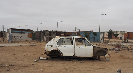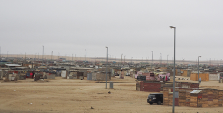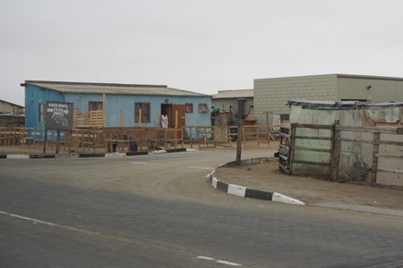 We finally got out of the slum area and were taken back to our hotel and sanitation. After using a real toilet and washing our hands to our elbows, Marge and I went out for a stroll around the tourist part of town. It was only about 55° with a cool breeze from the ocean. It is their winter. We got more Namibian rands from a Cirrus ATM, walked to see the red and white lighthouse, and to look at the beach and the Atlantic Ocean. We found a nice coffee shop, Slowdown, and enjoyed mochaccinos sitting inside. They were delicious.