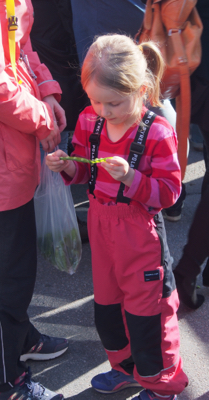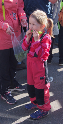 Waiting for the ferry - cute little girl eating raw peas
