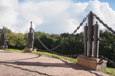Fence constructed from old anchor chains and cannon barrels