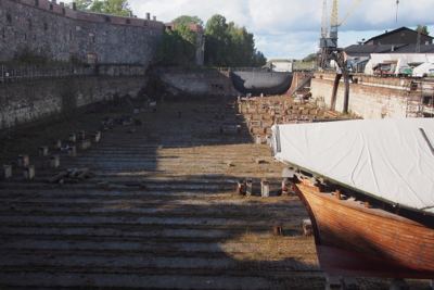 Suomenlinna has one of the oldest dry docks in the world. Swedish coastal ships were built there in the 1760’s and now it is used for renovating old wooden ships. The dock is operated like a lock. A ship can float in, the water is released, and the ship sits on blocks for repair.
