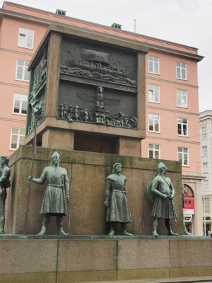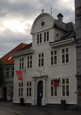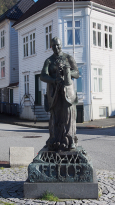 Back on the bus we drove past the Rosenkratz Tower and Haakonson Fortress. We stopped again to look at the cute little houses where fishermen used to live on crooked narrow streets or “smauts.” There was a statue of a lady with mugs of beer in the Madam Felle Square. She used to be in front of a tavern.