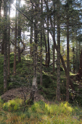 On the top of the funicular at Floyen, after admiring all the views of Bergen, we set off to walk to Skomakerdiket Lake. When we got there the young kids were putting on life jackets to go out in canoes so for peace and quiet we walked on up through the fir and hardwood woods with rock outcrops, moss, and fern. It was pretty because it is so different from home.