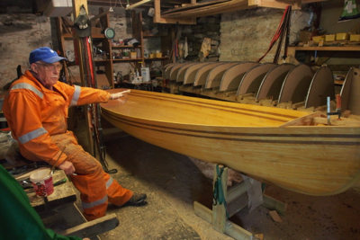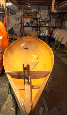 From the top we headed down to walk back to the city center. We passed a lumber mill with boards drying on racks. A man was in a shed making a wood and fiberglass rowboat and we stopped to talk to him. He showed us his work and I really admired the boat. I signed his guest book.