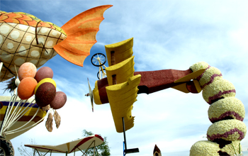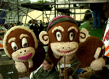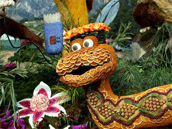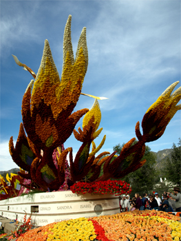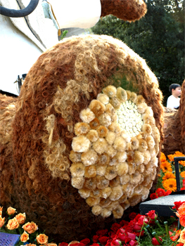 Below are pictures of the floats while in the parade, parked after the parade, and some pre-parade while they were being built. Pictures are great but being there is much, much better. These represent many, but not all, of the floats, etc. in the parade. Go to the parade, if you ever get the chance, and buy a seat in the grandstands - standing on the street is not the way to go.