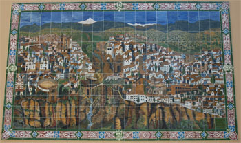 Rhonda is a very old mountain city with fortress wall and a deep ravine separating the old town from the new area. There are many places to look out from town and over the countryside. We could see the 12th c. Moorish walls of the town, the farmland, and the Sierra Rhonda Mountains.