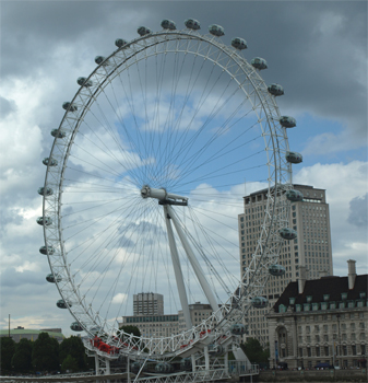 Our next stop was for a bite of lunch at a little sandwich shop near Westminster Abbey. Our avocado and aubergine (eggplant) sandwiches were delicious and our hot mocha and mint tea revived us. The tour of Westminster Abbey was very complete. We had the audio phones and followed the tour of the abbey, chapels, crypts, garden, museum, etc. complete with video in some cases and sound tracks in others. The architecture is fascinating, the list of people who are buried there is awesome, and to stand where so many kings and queens were crowned makes history feel alive. Next we walked across Westminster Bridge over the Thames and took pictures of Big Ben (and listened to it chime), Parliament and the London Eye (the huge Ferris wheel with gondolas instead of seats to let you see all of London).