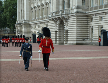 We got up at 5:30AM and drove to DIA, arriving at 8:30AM for our 10:30 United flight to Chicago. In Chicago we changed planes and flew United to London, Heathrow where we were met and taken to the Grosvenor House Hotel across the street from Hyde Park. Our room was not available so we checked our bags with the bellboys and went out sightseeing. We needed exercise so we opted to walk instead of taking the tube (subway). Our first stop was at Buckingham Palace to see some of the famous changing of the guards ceremony. Just as they were marching out, the heavens opened up and it poured rain. Our rain jackets kept us dry but our jeans were soaked. Thank goodness we still were wearing our Gortex boots.