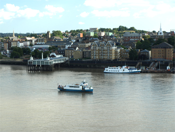 We slept late this morning, ate breakfast at the Lido buffet, and then went sight seeing in Gravesend (also called Gravesham). We caught the 10:15 ferry across the Thames and wandered around the town. Legend has it that this was the last place to bury dead seamen before sailing out on open waters. Sailors were pressed into service on ships often by being hit on the head in the London dock area pubs with a club. Some of them never woke up and were buried in Gravesend. Sailors who died on board ships after Gravesend were buried at sea.