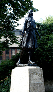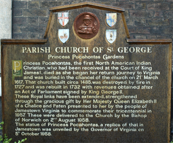 Pocahontas came to London in 1616 with her husband, John Rolfe, and their son, Thomas. On the start of the voyage back to Virginia, she died (probably of the Plague) and was buried at Gravesend. We looked at her statue in the courtyard of St. George's Church.