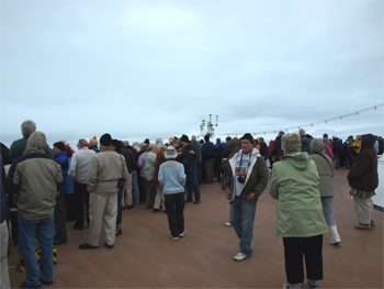Today was a lazy day. I took the "kitchen tour" in the morning and saw where our dinners are assembled. The main kitchen and bakery, etc. is on deck 4 and food is sent up by dumb waiter to the 7th deck where the garnishes are added. We also toured the "elegant" Pinnacle dinning room, which uses fine china and stemware and the meals are prepared by a separate master chef. The service and experience is pricey.