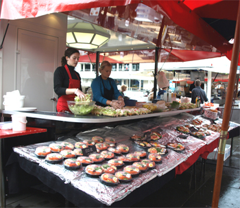 The fish market was an enticing place to buy fish for dinner or to buy a shrimp or lobster roll or a salmon and egg baguette, etc. and eat it right there. If it had been better weather we would have had lunch there.