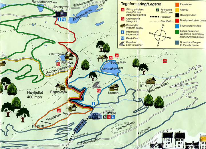 Tremendous park with lots of hiking trails on Mt. Floyen above the city