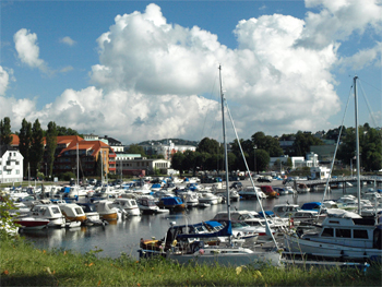Kristiansand is a nice town even without the volleyball. We walked the marina with lots of large expensive boats, the Otra River with its river pathway, old town (Posebyen) with its white wooden houses, and the shopping area. The Kristiansand Cathedral (Lutheran) was in the town center and had a young orchestra rehearsing inside. We sat and listened for a while. A practice volleyball court was set up right outside the front door of the church! It was next to an open-air farmers' market. We walked some of the cobblestone pedestrian streets. It is a very pleasant town.