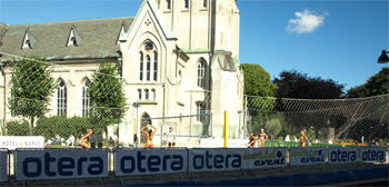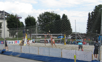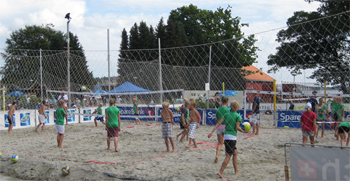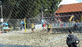 We planned to wander through town today on our own but...As soon as we got through the fish market and the sand sculptures along the marina park, I heard whistle blowing and the smack and bump of volleyball matches. To our great surprise, the FIVB beach volleyball tour was in town this week. It was an international doubles competition for men and women. The more I saw, the more I thought I might find a ref or two that I knew. Sure enough, I first found Patti Salvatore (another Hall of Fame collegiate ref) working a match. She was followed on the court by Dan Apol (from Castle Rock, CO) and then after talking with them I found Ryan McDowell (from Denver). What are the odds of coming to Norway by way of Iceland and the Polar Ice Cap to find three friends and colleagues from Home!?