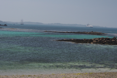 The Isles of Scilly are comprised of 55 islands and over 90 rocks at high tide. Our ship anchored a good way from shore as it was again low tide this morning and many more rocks were showing. There have been over 1,000 shipwrecks around these islands.