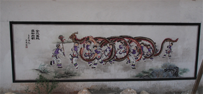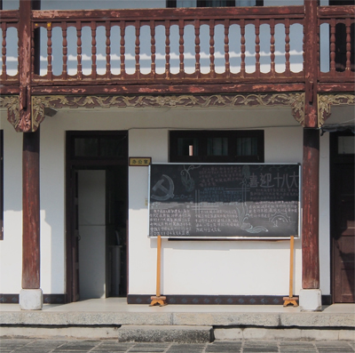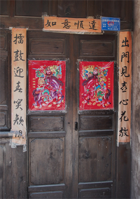 In Yunnanyi we walked through the town gate and along a street with a solid row of wooden houses. On the entry doors were pictures of the fabled warlords who were keeping out ghosts. We looked at a Confucian Temple and then entered the village school grounds.